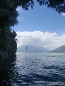 The sack incident was not on anyone’s mind a short while later when we were standing on a diving platform three stories above the cool waters of Lake Atitlan. We quickly determined that Zach should be first to jump.