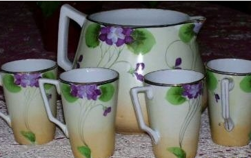 For years, a hand-painted Nippon china lemonade set has had a place of honor in my dining room. My grandmother, who was born in 1885, gave it to me. Mimmie, as we called her, had a 4th grade education (hence the spelling “Mimmie” instead of “Mimi” as others might have spelled it).