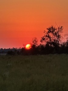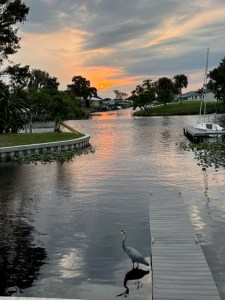 There weren’t any cats claiming me in the Perry, Florida KOA, our last stop before Okeechobee. It was the first location that we could see the damage wrought by Helene. Piles of debris were on the roadway. Electrical trucks ferried up and down the highway. The sunset not damaged by the hurricanes was a gorgeous hue of oranges.