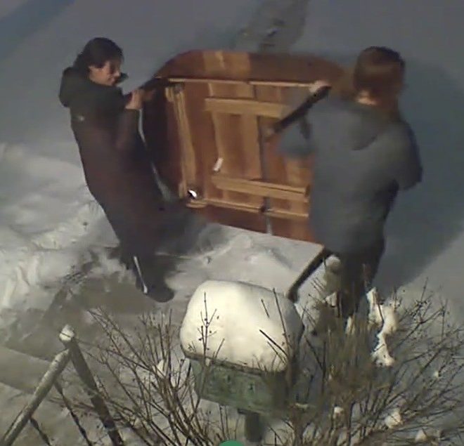 “Crystel’s carrying the dining room table out of the house!” Jody said, a note of panic in her voice. “Now the chairs!”