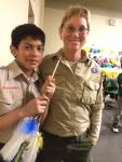 I reflected to first grade when he joined his Tiger den. I thought that I’d be able to drop him off at the meeting, run an errand, return and pick him up. I soon found out that dens were as strong as their parent volunteers. It was also clear that our Tiger den leader needed help with our group of boys. The male den leader and I became a team. I organized the projects and the field trips, and he used his booming voice to bring the boys to attention. When he couldn’t make the meetings, I’d surprise the boys with my wolf whistle when I needed them to listen.