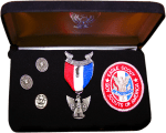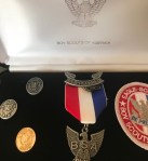 My eye’s widened when the rich black velvety coffin box was opened. Inside was a sterling silver Eagle medal, an Eagle Scout embroidered emblem, an oval pin for the Eagle’s mother and one for the dad. The Boy Scout Eagle Presentation kit was impressive.