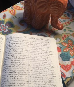 I realized that writing down these events ensures that I’ll have a record of them, that I won’t forget. But my journal also is a container for the challenging events in my life. I can close my journal, snap the elastic band around the cover and my emotions are safe, caught within the margins.