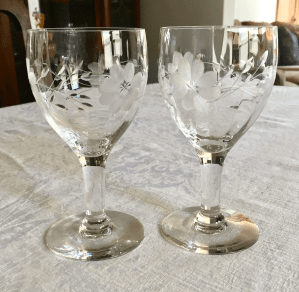 My mother said my great great uncle, whose name I don’t know, made this beautiful platform rocker and matching footstool for his sister Anna. Making furniture was his trade. Anna’s husband George also made furniture, so perhaps it could be his handiwork. It is in the Eastlake style, so its design and decorations are simpler than ornate Victorian furniture. I don’t know if Anna brought it from Alsace (on the border of France and Germany) when she emigrated from France or if it was made in the U.S.