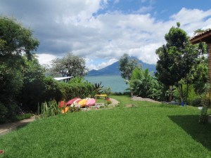 Our view from the restaurant looks right out over Lake Atitlan and Indian Nose, a unique mountain formation that resembles the face of a Mayan Indian in repose.