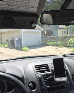 My best bet was a holder that attaches to the CD slot. Mmmmk. I don’t play CDs anymore. I listen to the radio, not even Sirius. Or I use the oldest iPod you’ve ever seen for music and podcasts. The Smithsonian museum probably has one in their ancient technology display. Originally, I was saving all that memory on my phone for photos, not music.