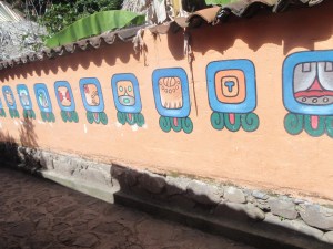 Next to the walkway was a wall with beautiful colorful paintings including a Mayan calendar.